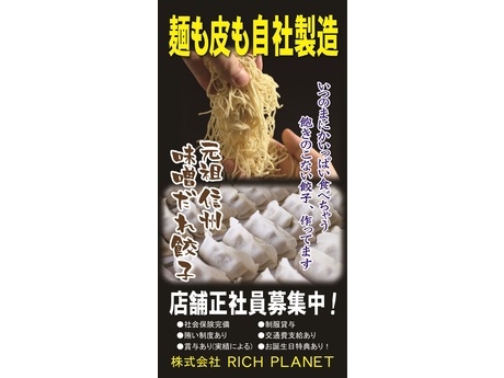 1.5日~2日/週の休日!!一緒に働く仲間大募集中!!飲食業界への転職を応援します!!もちろん現飲食業界の方も大歓迎! 元祖信州味噌だれ餃子の店 一緒に盛り上げていきましょう。